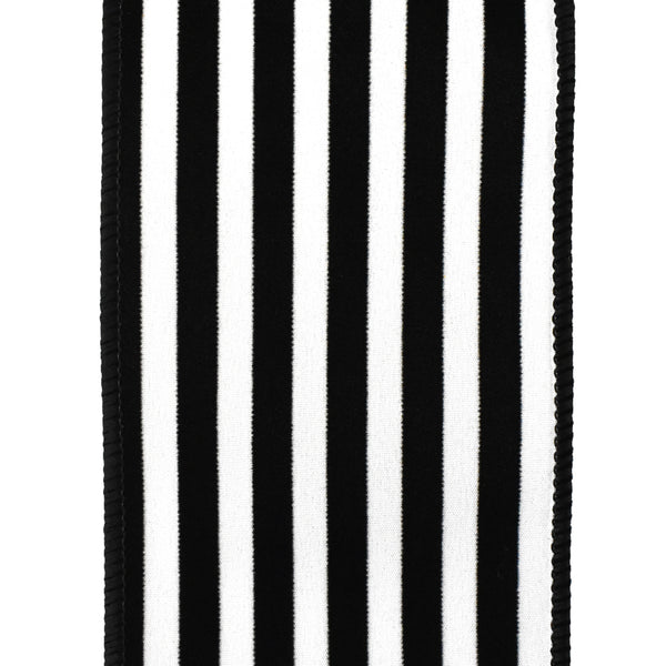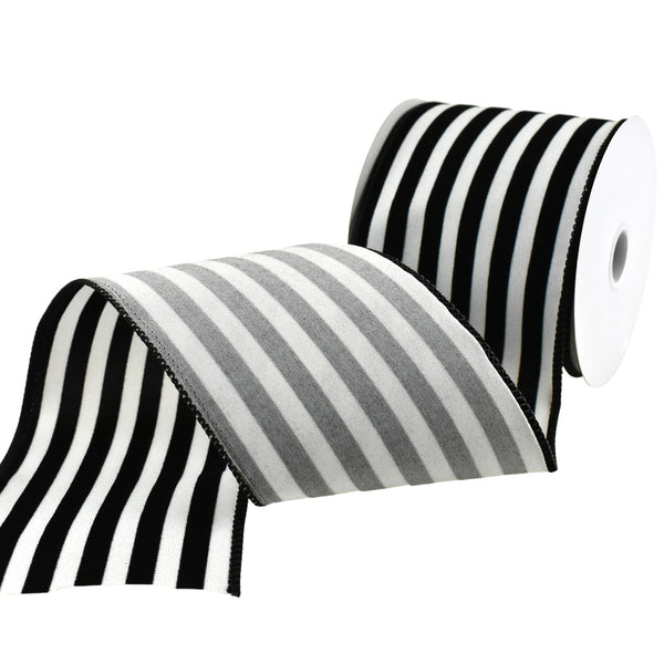 Flocked Classic Cabana Stripes Wired Ribbon, 4-Inch, 10-Yard - Black