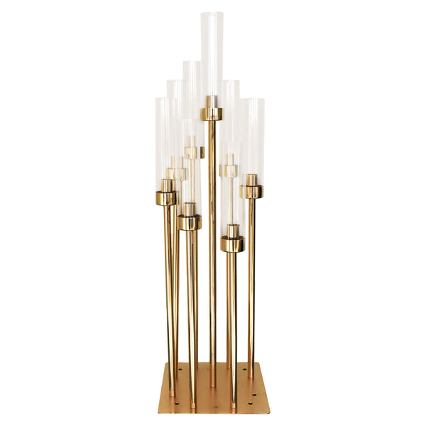 Add the perfect accent to your party's decor with this stylish centerpiece! Featuring 8 cylinders, you can place tapered candles, or decorate around it with flowers or garlands. Perfect for making a statement at parties, home decor, or any event!