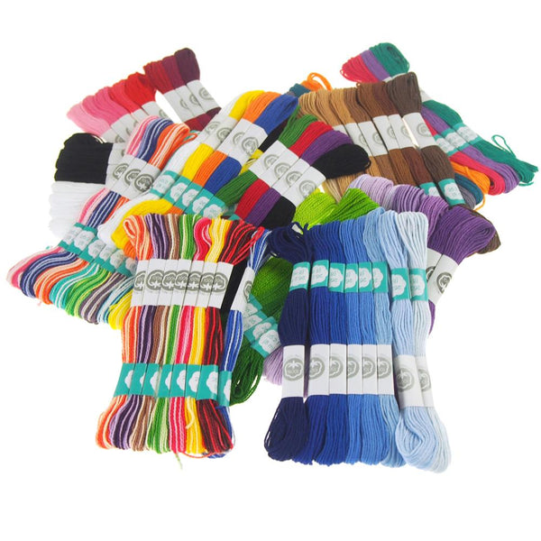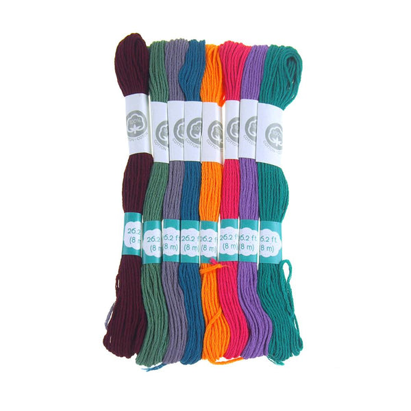 An assortment of 8 strands divisible floss made from 100% Cotton. Each skein is 8.7 yards (26.2 feet), 100% colorfast and fade resistant.