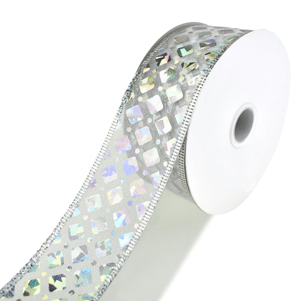 Add your own personal touch to any project! This ribbon features a sheer fabric embossed with shiny diamond accents for a chic touch to any project you use these with. Take your decorating or DIY to the next level! Note: Contains wire Length: 10 yd Width: 1.5"