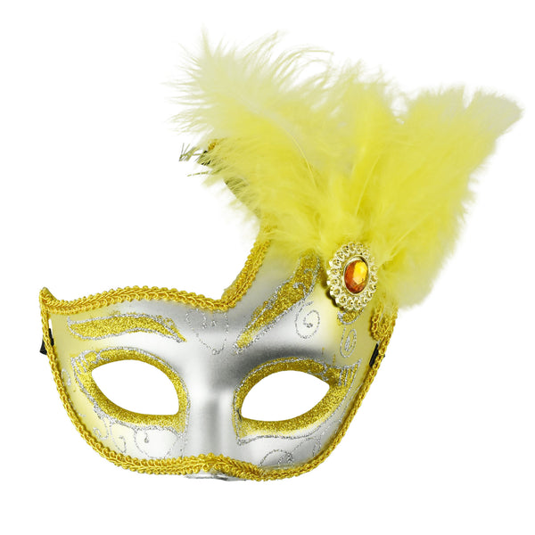 Fancy Feather and Gemstone Accent Mask, 10-1/4-Inch x 6-3/4-Inch