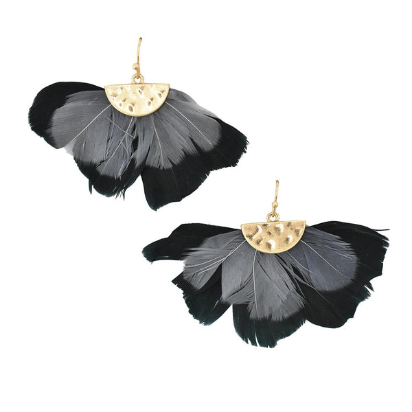 LOVELY DROP EARRINGS - These drop earrings feature beautiful feathers with a hammered metal, which makes it look more unique and eye-catching.