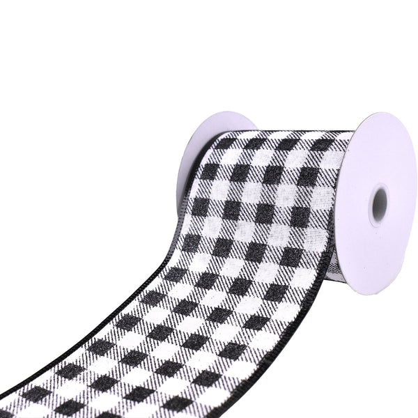 Glitter Buffalo Plaid Wired Ribbon, 4-Inch, 10-Yard