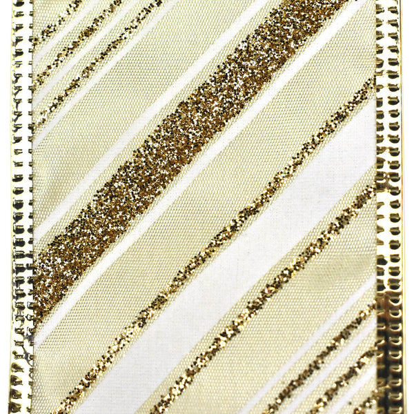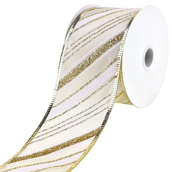 Glittered Christmas Diagonal Stripes Wired Ribbon, 2-1/2-Inch, 10-Yard