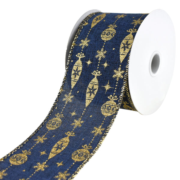 Glittered Christmas Ornaments Faux Linen Wired Ribbon, 2-1/2-Inch, 10-Yard