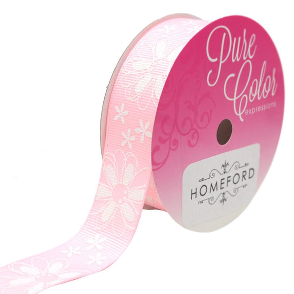 Glitter Daisy Printed Grosgrain Ribbon, 7/8-Inch, 4-Yard
