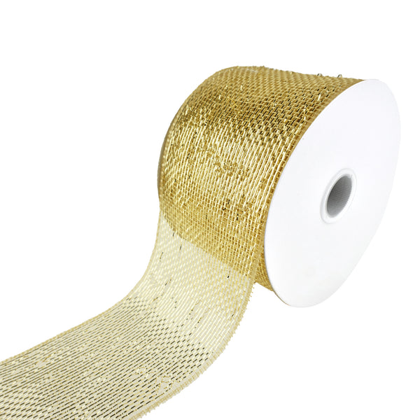 These decorative metallic mesh ribbons are perfect for every season. Their beautiful design is excellent as decorations for gift wrapping and parties or events. These ribbons are also great for arts and crafts, home decor projects and other DIY projects. Features a gorgeous reflective mesh design. Comes in the colors: champagne, gold, and rose gold. Please note this is not a wired ribbon. Width: 4" Length: 25 yards
