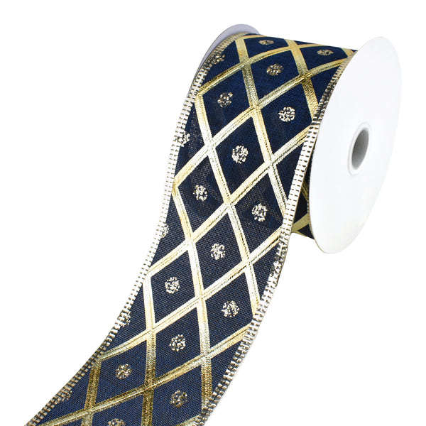 Metallic Harlequin Glittered Dots Wired Ribbon, 2-1/2-Inch, 10-Yard