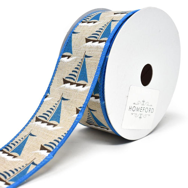 Sailboats at Sea Wired Linen Ribbon, 1-1/2-Inch, 10-Yard