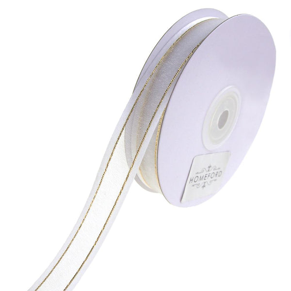 Gold-Lined Satin Edge Organza Ribbon, 5/8-Inch, 25-Yard