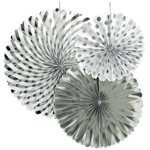 Consist of 3 spiral paper fan in solid, striped and polka dots print.