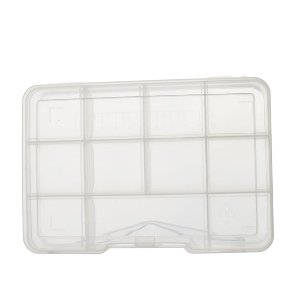 This box is perfect for any small tools and supplies. The 11 slots give you plenty of room to organize small items, while still being manageable. This plastic craft organizer box is designed to safely and neatly hold your crafting supplies. The compact design makes it ideal for storing small parts, or sorting scraps until you can use them.Length: 6.75" Width: 4.75"