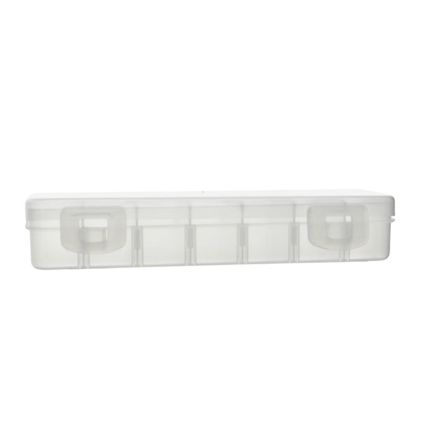 This box is perfect for any small tools and supplies. The 7 slots give you plenty of room to organize small items, while still being manageable. This plastic craft organizer box is designed to safely and neatly hold your crafting supplies. The compact design makes it ideal for storing small parts, or sorting scraps until you can use them.Length: 6.75" Width: 2.75"