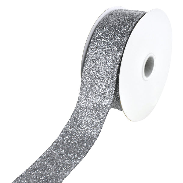 Christmas Glitter Frosted Polyester Wired Ribbon, 10-Yard