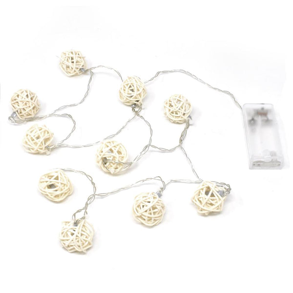 Battery Operated Rattan Wicker Ball String Lights, 40-Inch