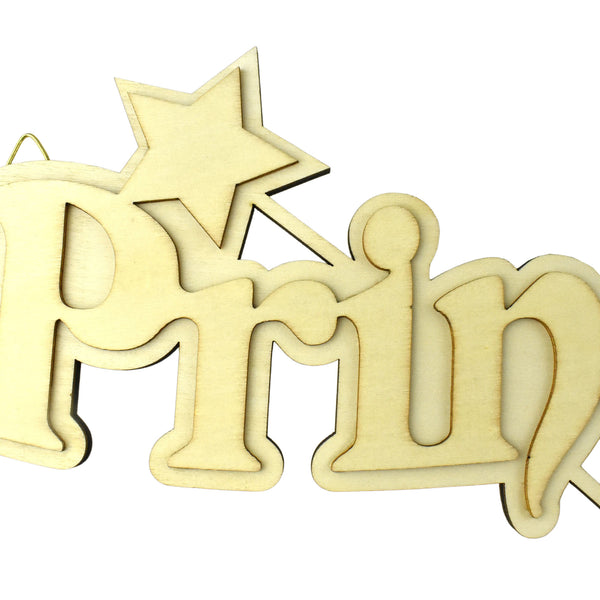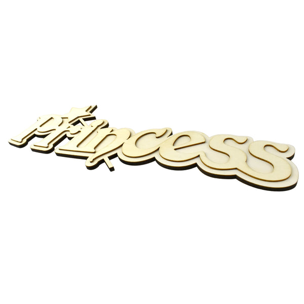 Make a crafty statement with this wooden plaque featuring the iconic phrase 'Princess'! The wooden shape comes finished with a unique 3D design and hooks for easy hanging. Customize it however you want with your favorite paints, markers, glitter and more so that this piece can brighten up your decor! Length: 11.75" Width: 4.25"