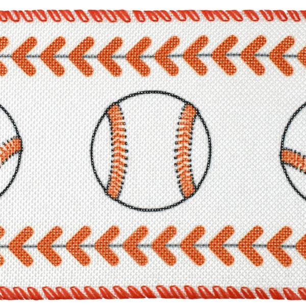Baseball Stitched Edge Wired Ribbon, 2-1/2-Inch, 10-Yard