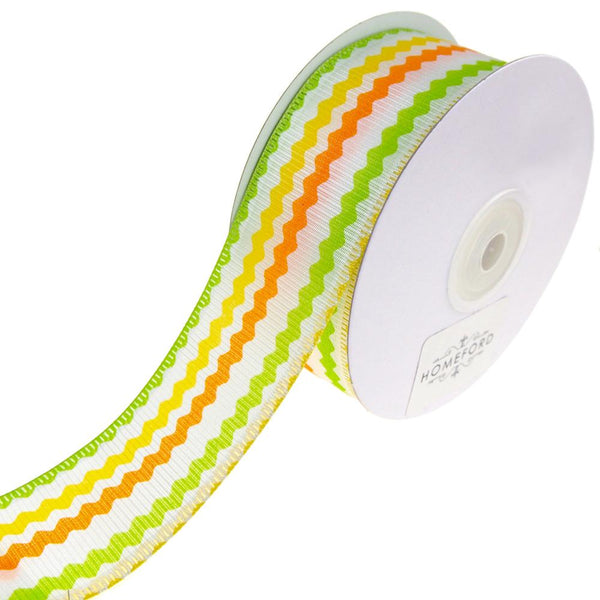This colorful ribbon has a ric-rac style print, and is perfect for the Spring and Summer seasons! Perfect for wrapping gifts, creating gift bows, hair ties, and more. Features a wired edge, making it a great choice for anyone who wants to ensure their bows hold their shape.