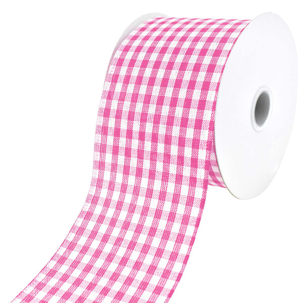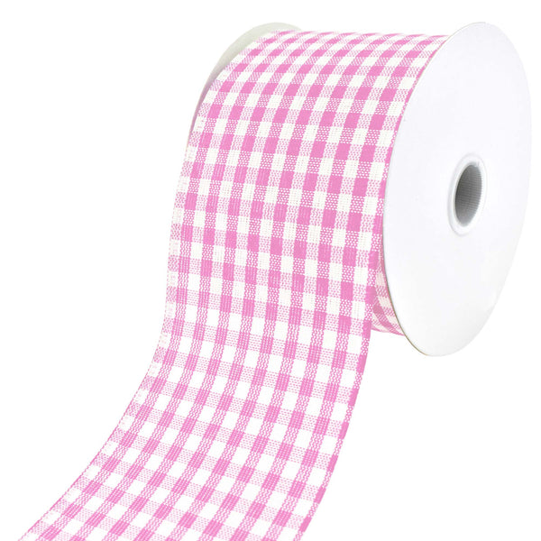 Add your own personal touch to any project! This ribbon features a gingham plaid pattern available in a variety of bright, beautiful colors for the perfect finishing touch to any gift, home decor, DIY, or craft project you use these with. Take your decorating or DIY to the next level! Note: Contains wire Length: 10 yd Width: 2.5"