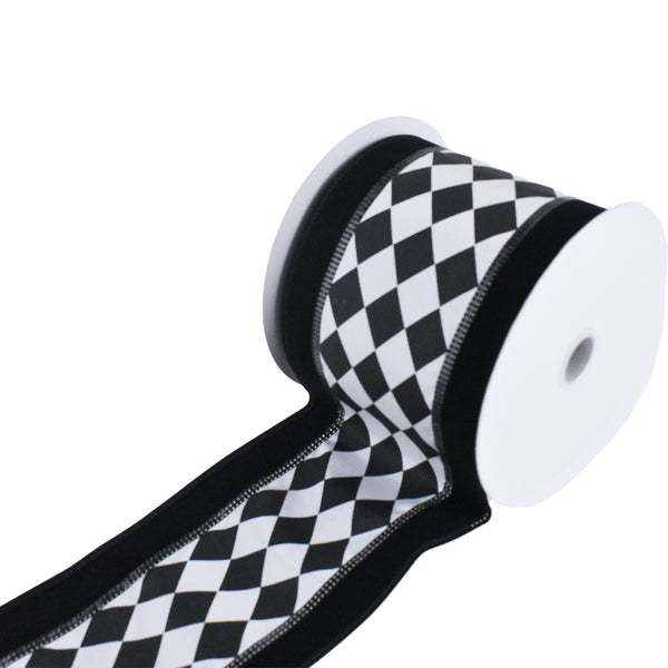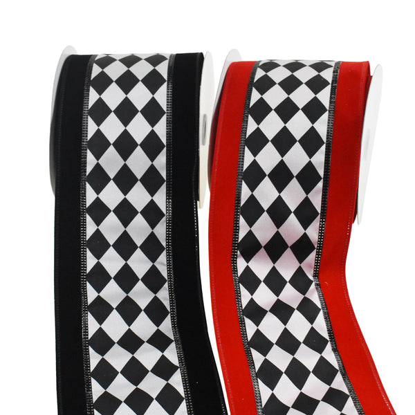 Add your own unique touch to any project! This ribbon features a harlequinn diamond pattern for the perfect addition to any indoor home decor, DIY projects, or any other crafting needs. Take your decorating or DIY to the next level! Note: Contains wire Length: 10 yards Width: 4"