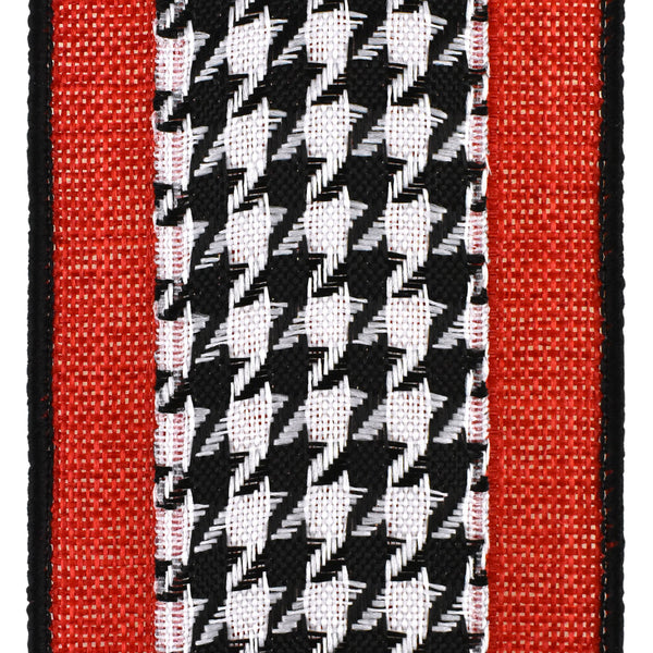 Houndstooth Faux Linen Edge Wired Ribbon, 2-1/2-Inch, 10-Yard - Red