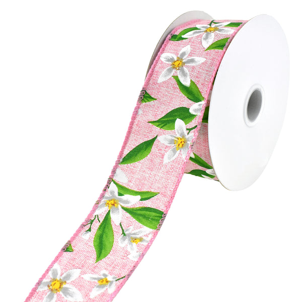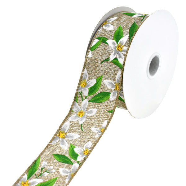 Add your own touch to any project! This ribbon features bright white blooming lillies on a faux linen canvas for the perfect finishing touch to any home decor, DIY, or craft project you use these with. Take your decorating or DIY to the next level! Note: Contains wire Length: 10 yd Width: 1.5"