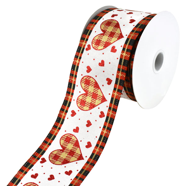 Valentines Day Buffalo Plaid Hearts Wired Ribbon, 2-1/2-Inch, 10-Yard