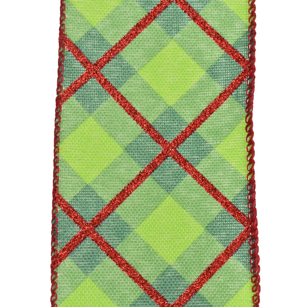 Christmas Georgina Plaid Red Trim Wired Ribbon, 2-1/2-Inch, 10-Yard - Green