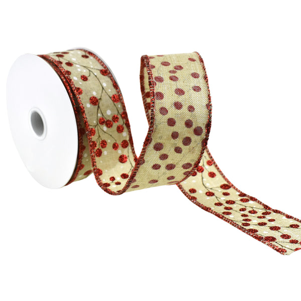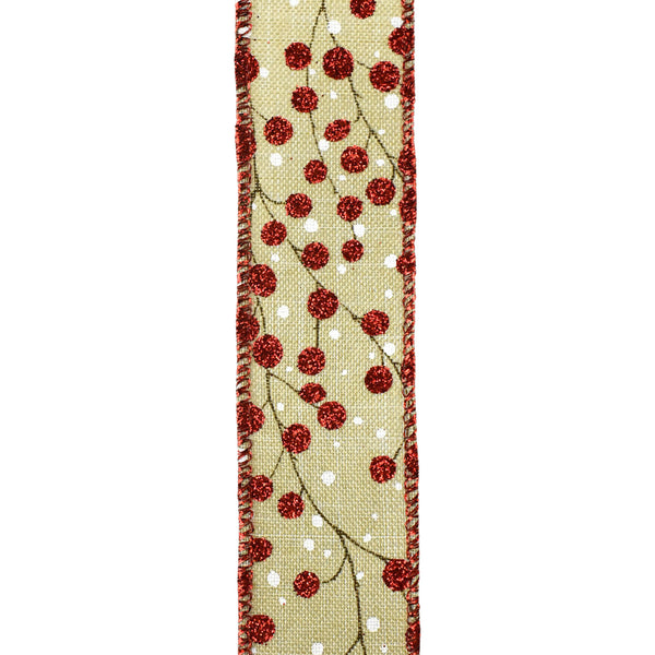 Christmas Glitter Berry Branches Wired Ribbon, 1-1/2-Inch, 10-Yard - Natural