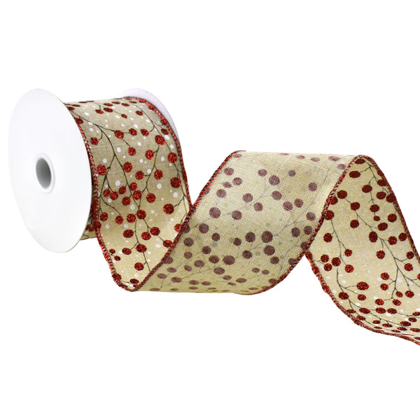 Christmas Glitter Berry Branches Wired Ribbon, 2-1/2-Inch, 10-Yard - Natural
