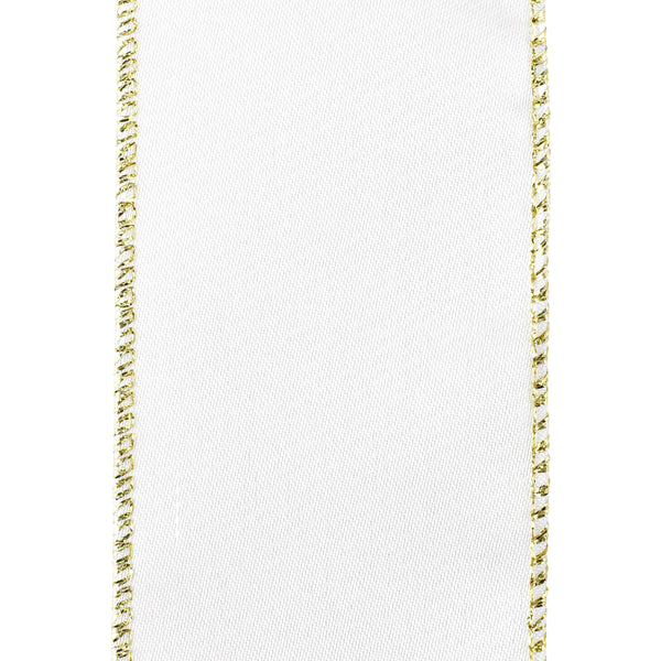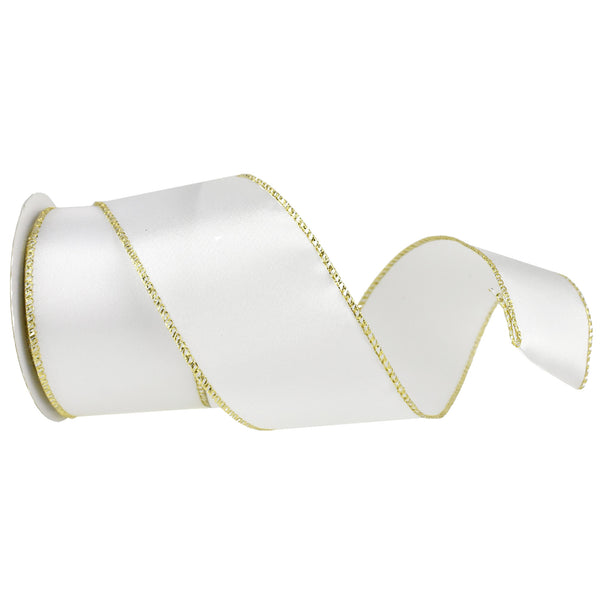 Classic Satin Metallic Edge Wired Ribbon, 2-1/2-Inch, 10-Yard - White/Gold
