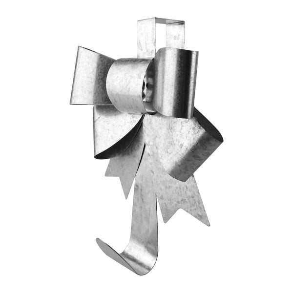 This adorable metal wreath hanger will brighten up any door in your home! This hanger features a big bow that perfectly fits in with any Christmas wreath you hang on it. This holiday accessory is perfect for both indoor and outdoor holiday home displays! Length: 12" Width: 7.5"