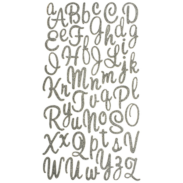 Glitter Cursive Alphabet Letter Stickers, 1-Inch, 50-count