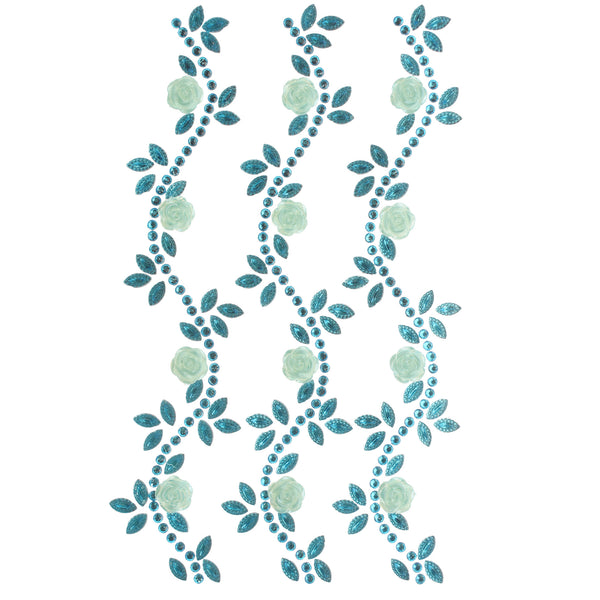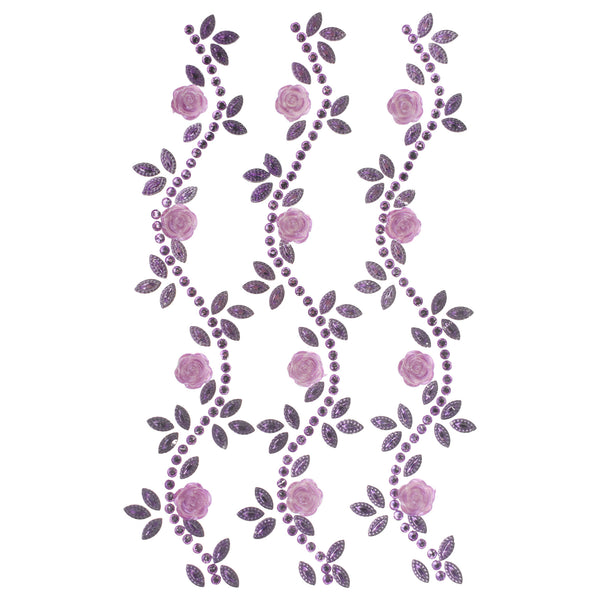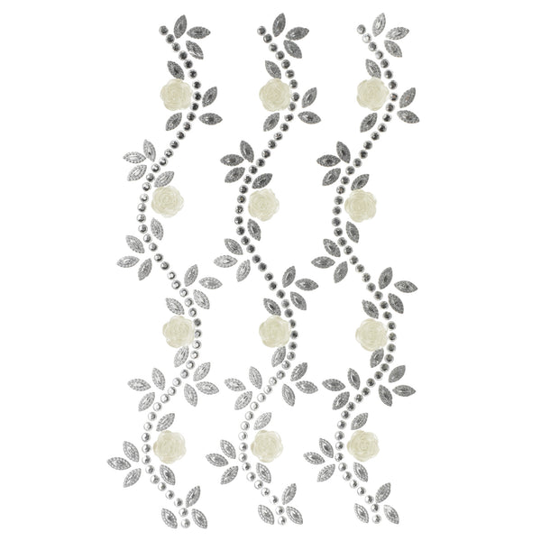 Floral Accented Rhinestone Swirl Stickers, 6-1/4-Inch, 3-Count