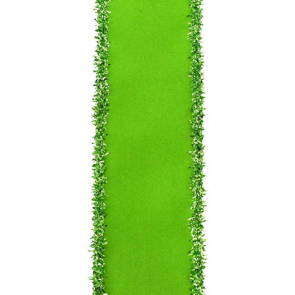 Christmas Velvet Tinsel Edge Wired Ribbon, 1-1/2-Inch, 10-Yard - Lime Green