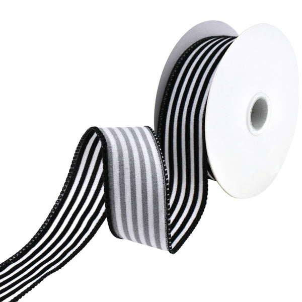 Flocked Velvet Cabana Stripes Wired Ribbon, 1-1/2-Inch, 10-Yard
