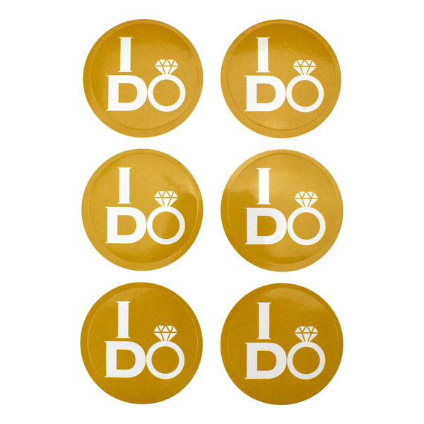 Create a romantic, custom design that's all your own with this easy-to-use sticker label pack! Sporting the iconic phrase 'I Do' with a ring design to help you create unique labels for wedding decorations, gifts, favors and more! Perfect for adding a touch of style and personalization to your wedding. Pack: 24 stickers Diameter: 2"