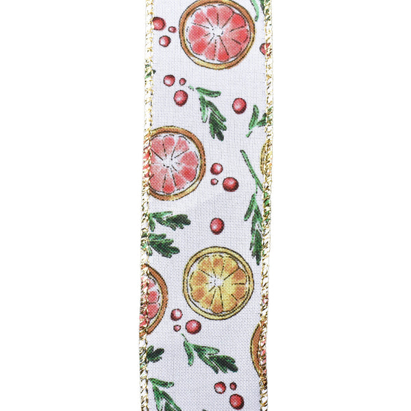 Citrus and Berries White Wired Ribbon, 1-1/2-Inch, 10-Yard