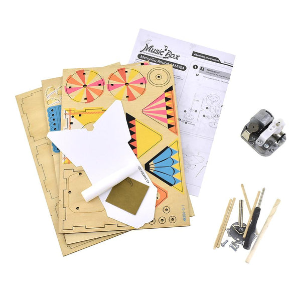 Merry-Go-Round DIY 3D Wooden Music Box Puzzle, 6-3/4-Inch