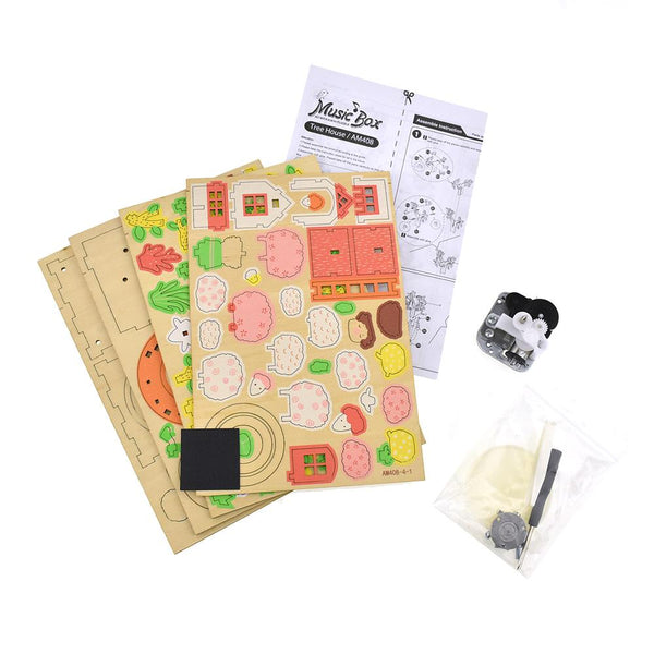 Tree House DIY 3D Wooden Music Box Puzzle, 7-3/4-Inch