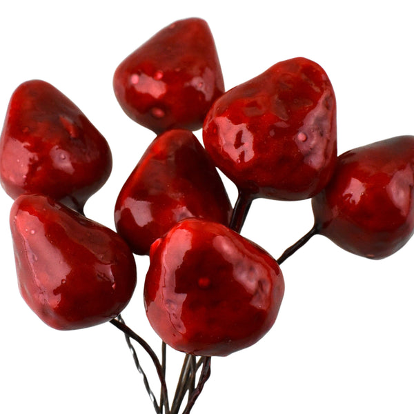 Artificial Glossy Foam Mini Strawberry Picks, 6-Inch, 8-Count