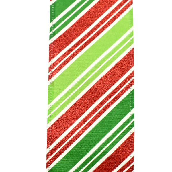 Christmas Glitter Candy Cane Stripes Wired Ribbon, 2-1/2-Inch, 10-Yard - Green/Red/White