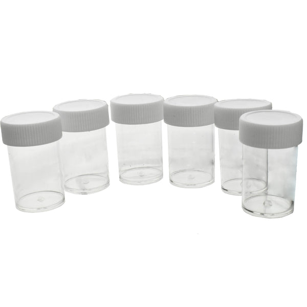 These cups are perfect for storing paint, beads, or any small objects. The small size makes them easy to store and organize. The pack comes with 6 cups each with their own non-spill lids. Length: 2" Width: 1"