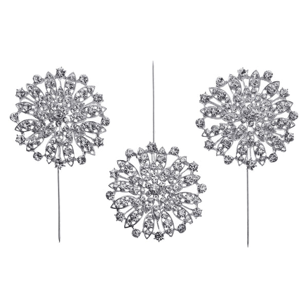 Dazzling Flower Rhinestone Pins, 4-1/4-Inch, 3-Count