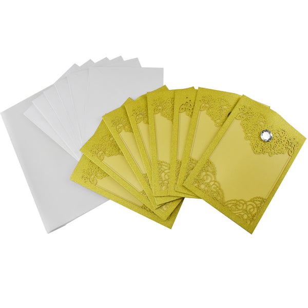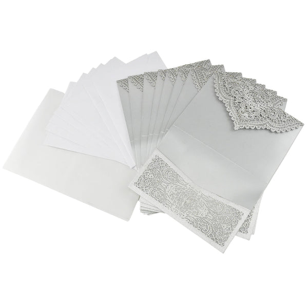These delicately cut invitation cards are a great for any occasion! You can write on these with permanent markers or calligraphy ink. Comes with a set of envelopes to send these delightful invites anywhere, postage stamps not included. Length: 6.75" Width: 5"