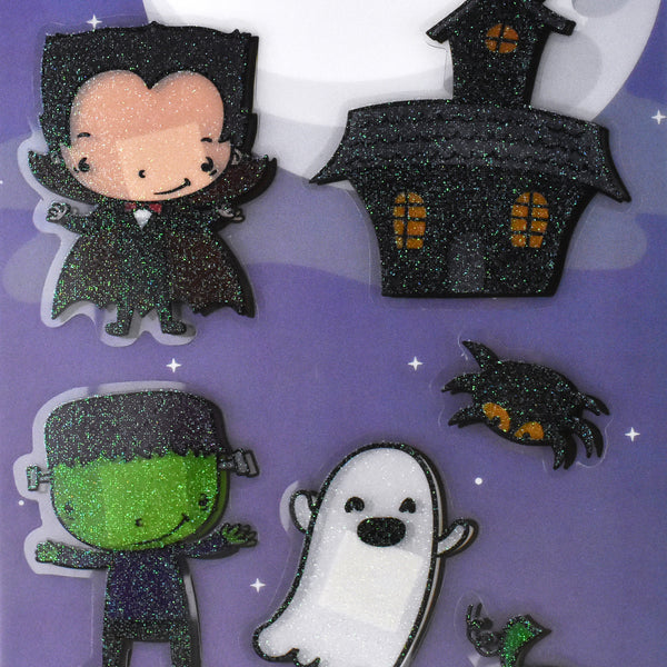 Halloween Cartoon Monster Pals 3D Stickers, Assorted Sizes, 16-Piece