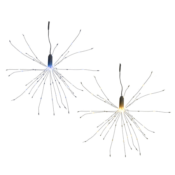 Light up any space with these LED string lights! Featuring 5 sets of bendable lights that can be shaped into fireworks and a flexible pattern, these string lights can be placed on walls and other surfaces and put on a show simply by plugging in! Includes a button by plug to allow basic customization of light patterns.