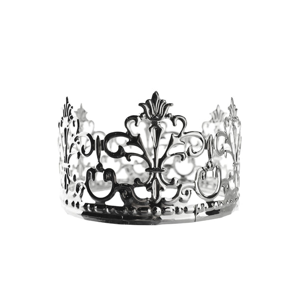 Make your event a royal occasion, any day of the year! This metallic crown features a flourished decorative pattern finished with a shiny metallic paint. Perfect for a cake topper, tablepiece, or party accessory!