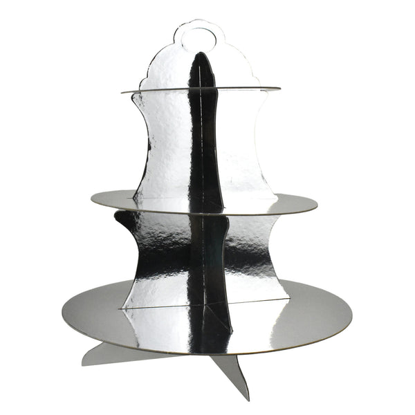 This three-tier treat stand is perfect for placing tiny treats and desserts on your table, or as a cute complement to a theme party. The tiers are connected by decorative scallop accents, and the whole stand is decorated in shiny metallic colors. A great choice for any themed party! Length (Assembled): 14-Inch Width (Assembled): 12"